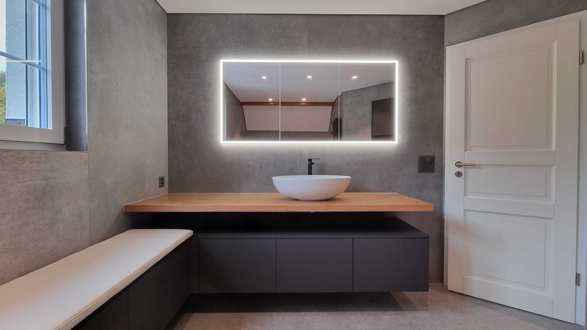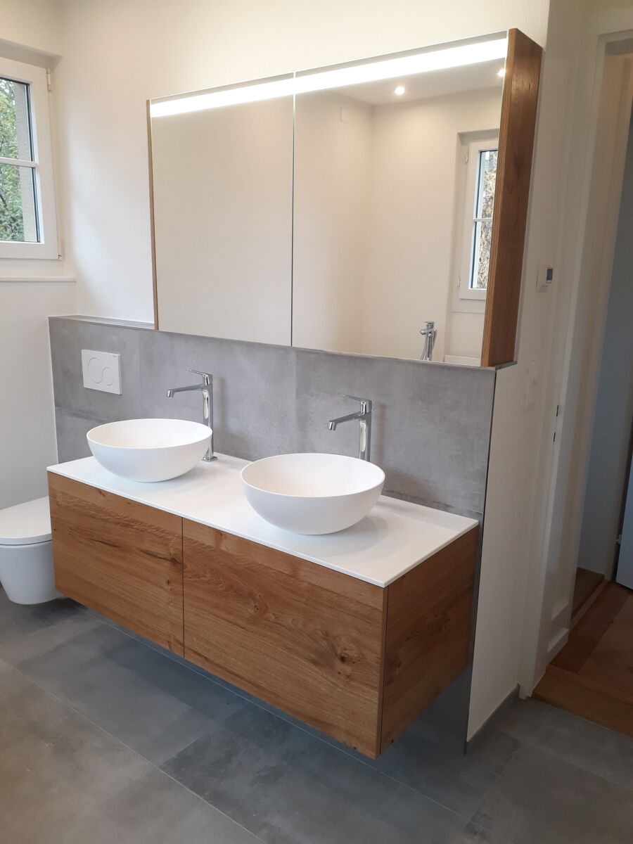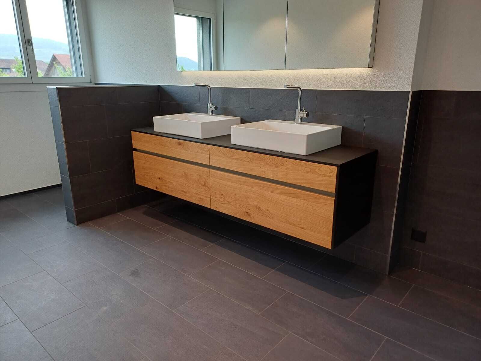 Individuell gefertigte Badmöbel und elegante Ganzglasdusch-Trennwände geben Ihrem Bad die ganz persönliche Note. Alle unsere Möbel und Ganzglaselemente sind Einzelanfertigungen. Sie bestimmen Masse, Materialien und Ausführung. Trotz dieser einmaligen Individualität halten unsere Produkte im Preisvergleich mit dem Handel problemlos stand.